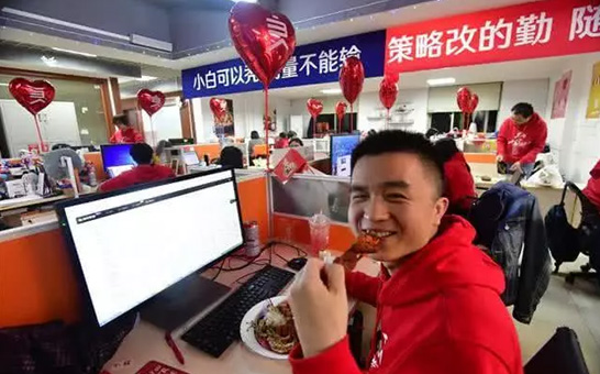 不少客服人員端著盤子回到工位上,邊吃邊忙。“現(xiàn)在是客服最忙的時刻”,客服部門負(fù)責(zé)人介紹,雙11期間有700多名客服人員在崗,雙11前夜開始大量消費者咨詢到貨時間、貨品優(yōu)惠等問題,因此10日晚6點開始,客服人員分批上班并奮戰(zhàn)到天明。