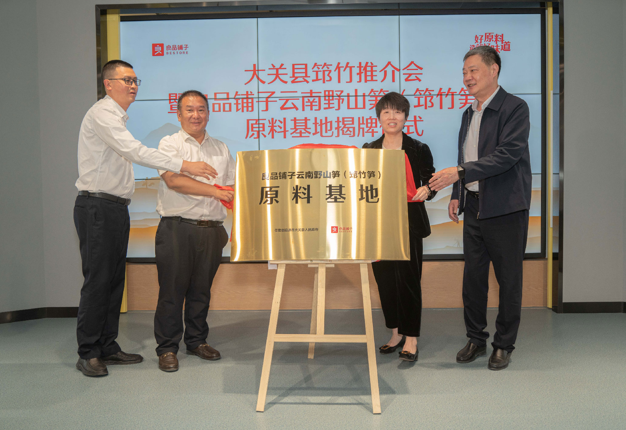 4月26日,中國(guó)食品工業(yè)協(xié)會(huì)副秘書(shū)長(zhǎng)徐堅(jiān),中共大關(guān)縣委常委、縣人民政府常務(wù)副縣長(zhǎng)張興,云南省農(nóng)業(yè)科學(xué)院農(nóng)產(chǎn)品加工研究所副所長(zhǎng)蘇火生,良品鋪?zhàn)庸煞萦邢薰靖笨偛谩⒐?yīng)鏈中心負(fù)責(zé)人劉玲出席“良品鋪?zhàn)釉颇弦吧焦S(筇竹筍)原料基地”揭牌儀式。